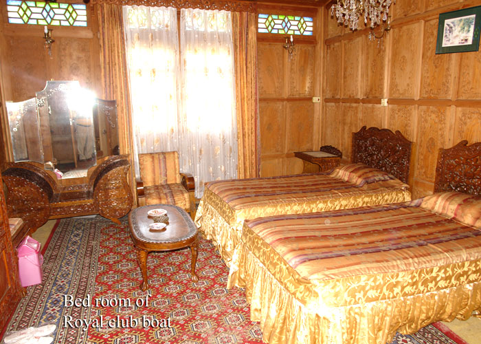 Taj Palace Group of Houseboats comes in Super Deluxe category, having traditional famous wood Carved Bed Rooms, Pleasantry Dinning Room and well furnished Drawing Room with eye catching decoration of Kashmir's Famous artistic Objects. |
