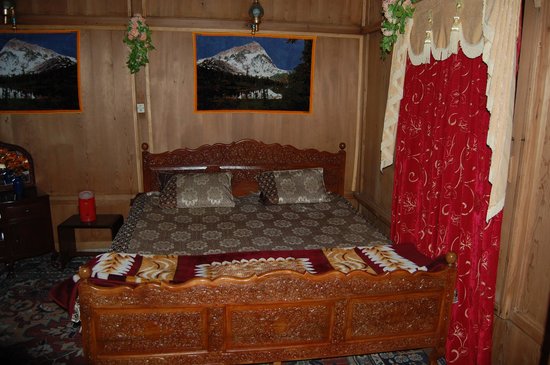 Meena Mahal five bed roomed Extravaganza, a blend of perfection and touch of excellence by Kashmir craftsmen, leaving the onlooker spell bound and dazed by the decor and quite modern fittings and furnishings. It is the piece of perfection to be seen to be marveled, a bed room on the first floor was constructed for the honey moon couples. |